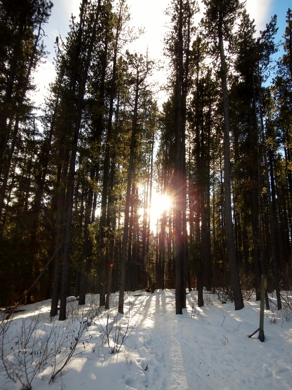 When we don’t have time to spend a whole day running an epic, really pointy-mountain run, we head to the West Bragg Creek trails for a glimpse of the mountains and big, hilly, treed trails. This Saturday we needed to be back in town and prettied up for a holiday gala by the evening, so we hiked and ran around 15 km in a few hours.